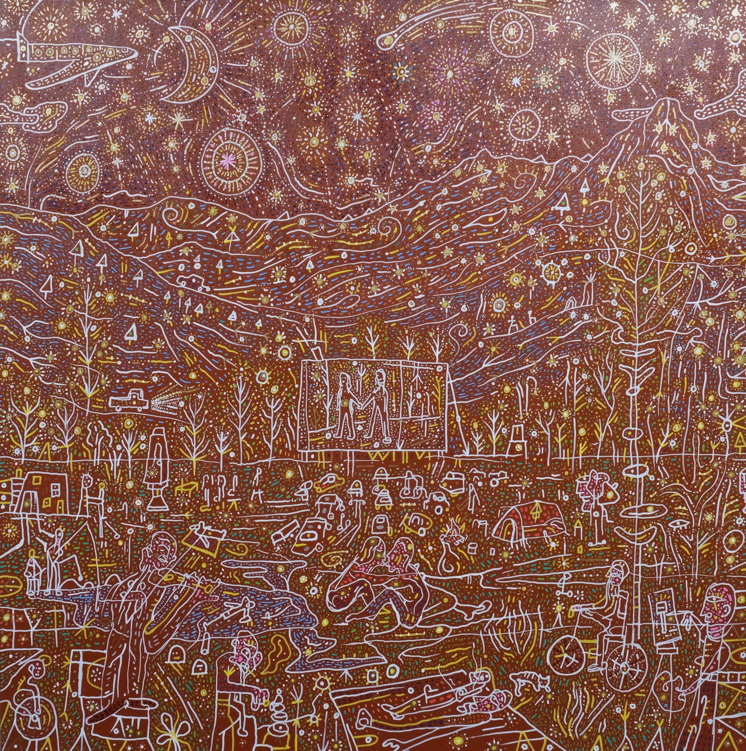 (SOLD) The Natural World Looks Out. Acrylic and Oil Markers on Canvas. 24" x 36". John Kline Artwork