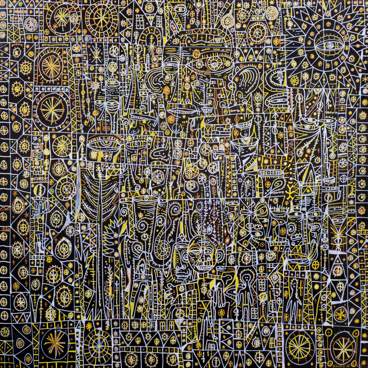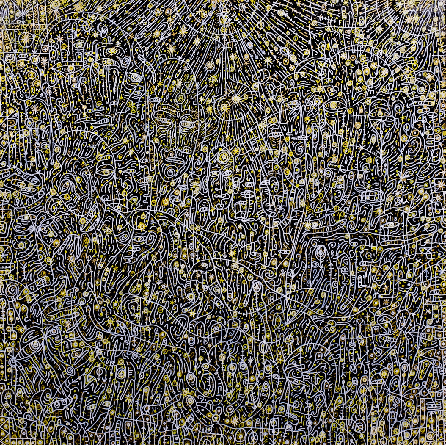 (SOLD) Only You Remain. Enamel and Oil Markers on Canvas. 20" x 20". John Kline Artwork. Abstract Painting,