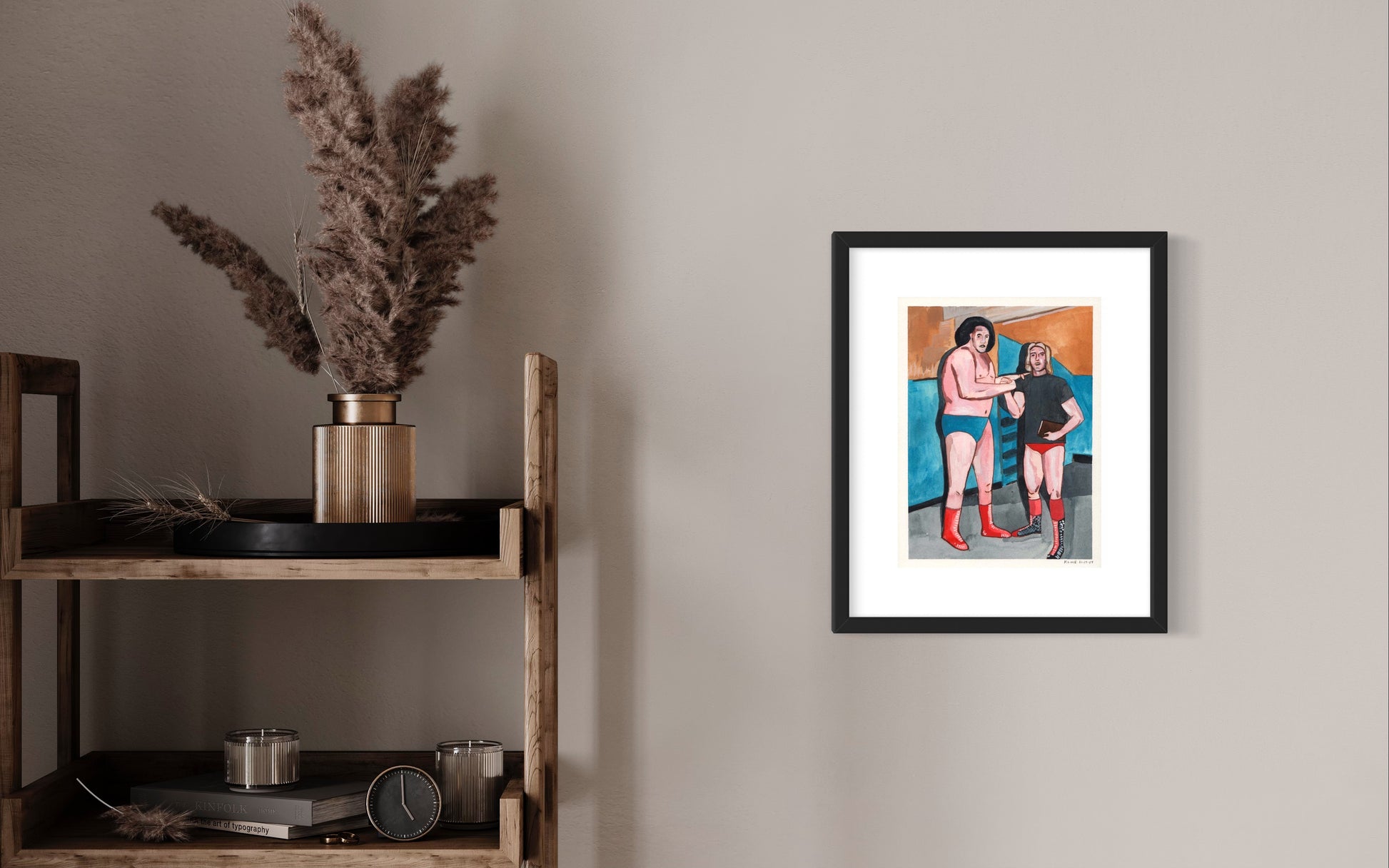 Andre the Giant and Ric Flair. Watercolor on Paper. 9" x 12". wrestling icons wwf. wwe. 1980s painting original pro wall art gifts for him