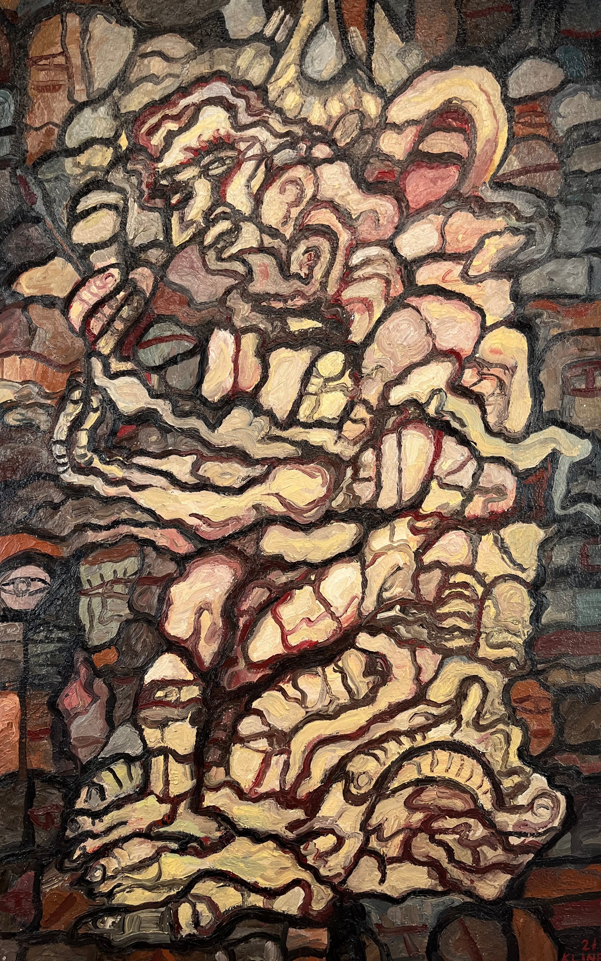 Self-Portrait in the Asylum. Oil on Canvas. 30"x 48" x 1.5". John Kline Artwork. Large Abstract Painting