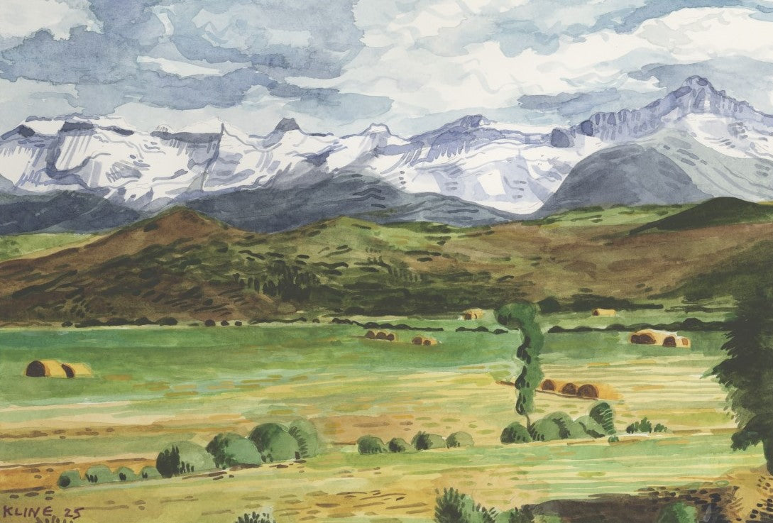 Snow Capped Summits, Colorado. Watercolor. 12" x 9". John Kline Artwork