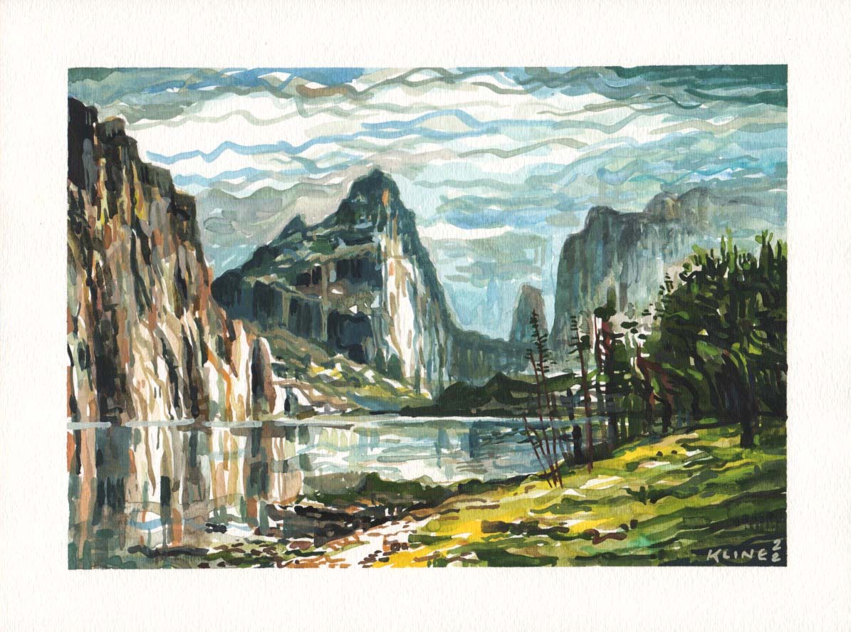 Unknown Mountains. Watercolor and Gouache. 12" x 9". John Kline Artwork. Small Painting