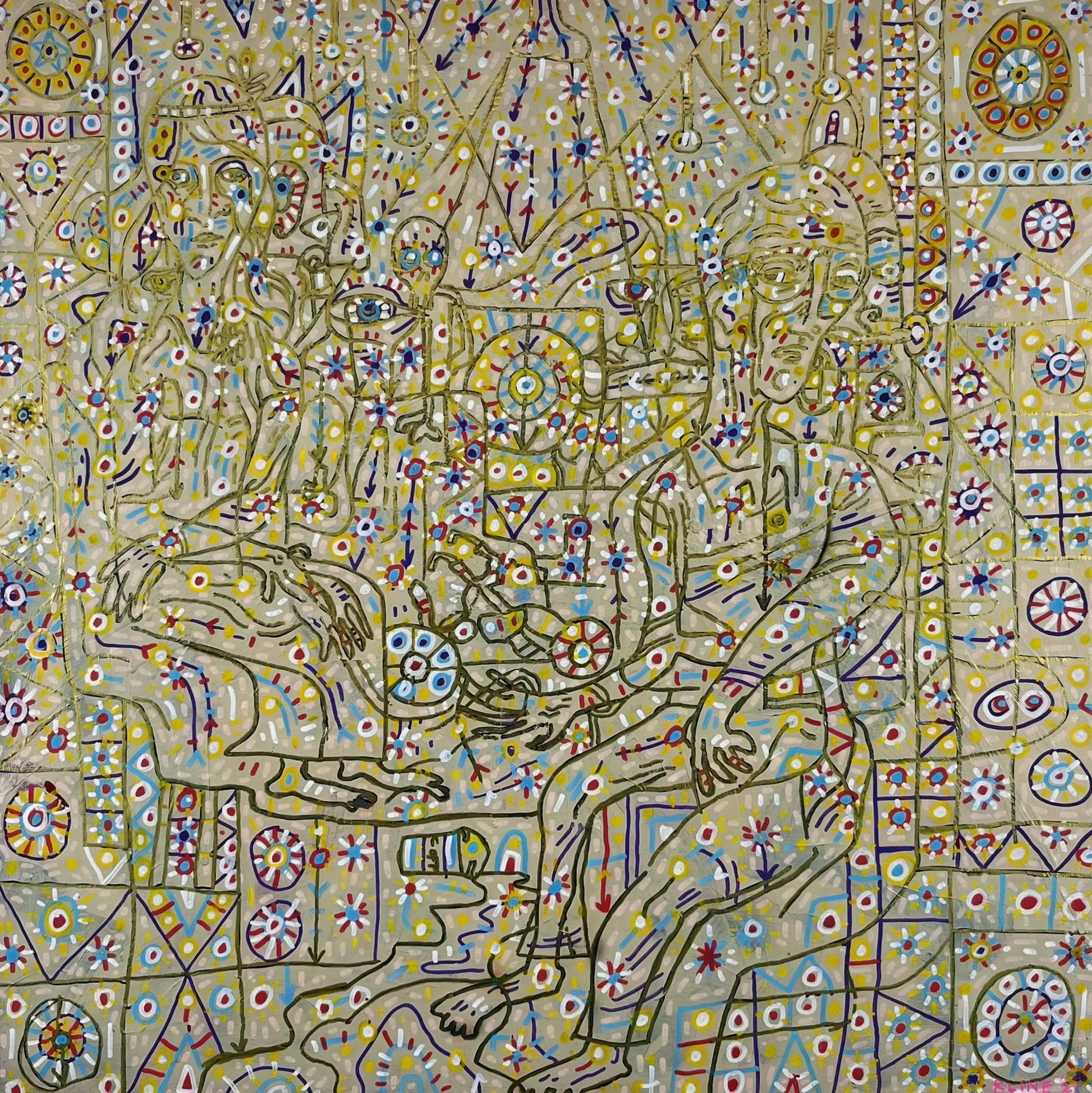 Vibrant Nonsense. Oil and Oil Markers on Wood. 24" x 24". John Kline Artwork. Abstract Painting.